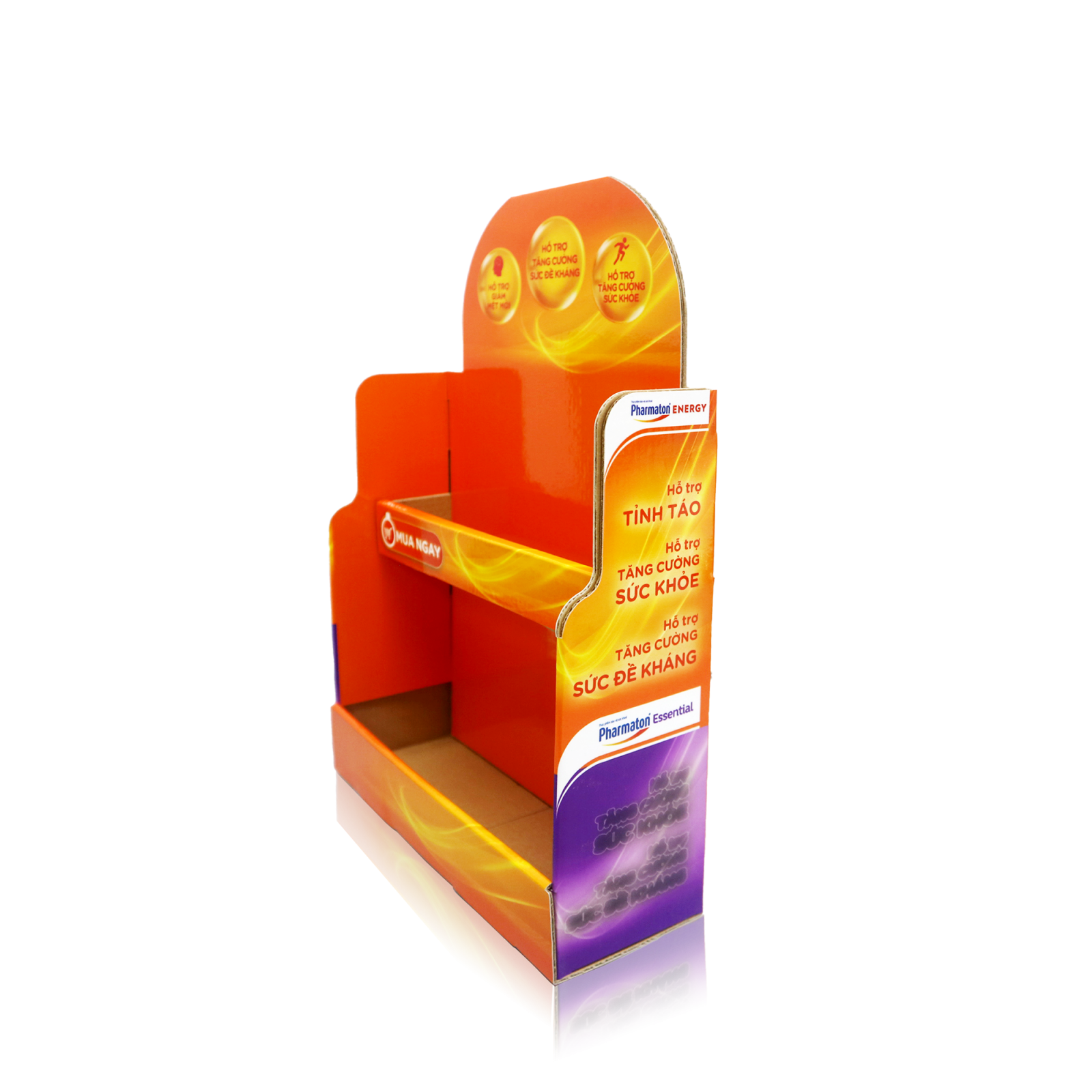 • Chất liệu: Giấy Duplex in offset cán bóng, bồi giấy carton song e, bế thành phẩm